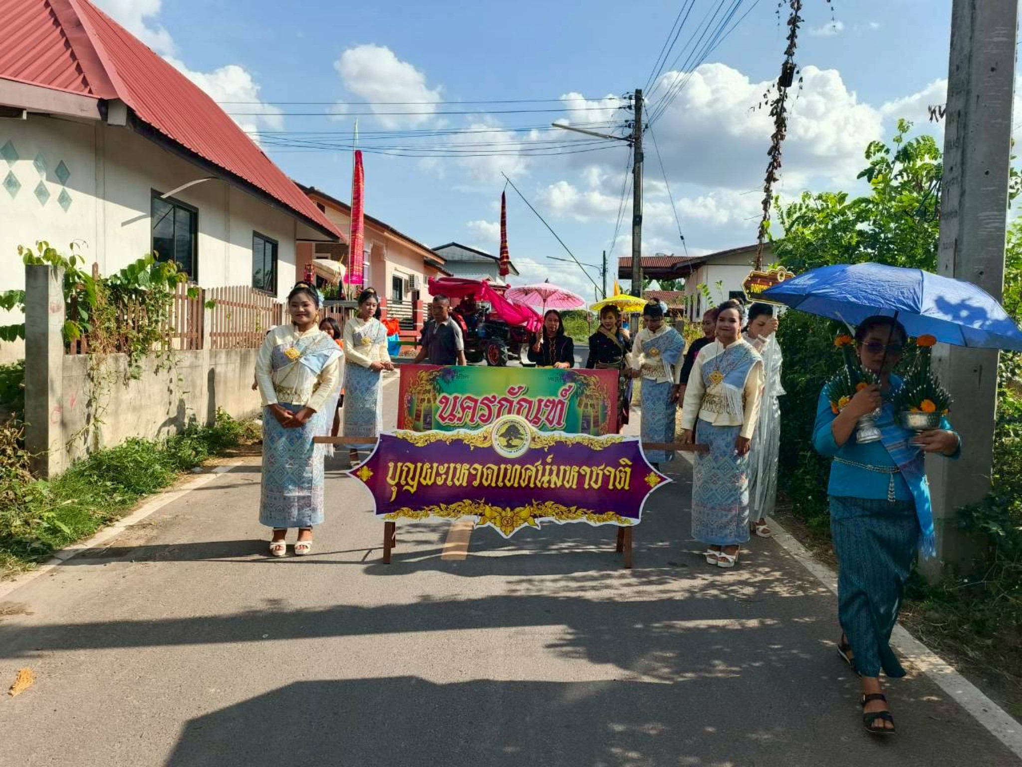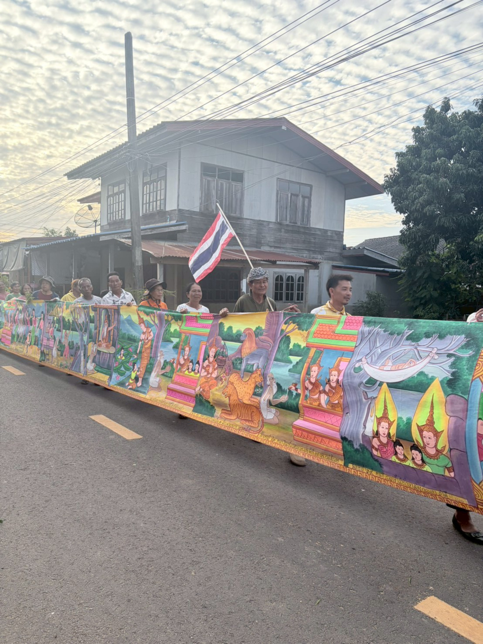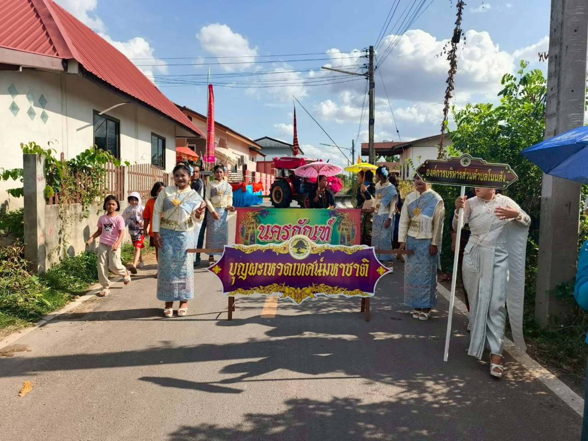 การแห่กัณฑ์เทศน์ของชาวบ้านที่นำมาถวายแบบเซอร์ไพรส์ในช่วงที่พระเทศน์กัณฑ์ต่างๆ