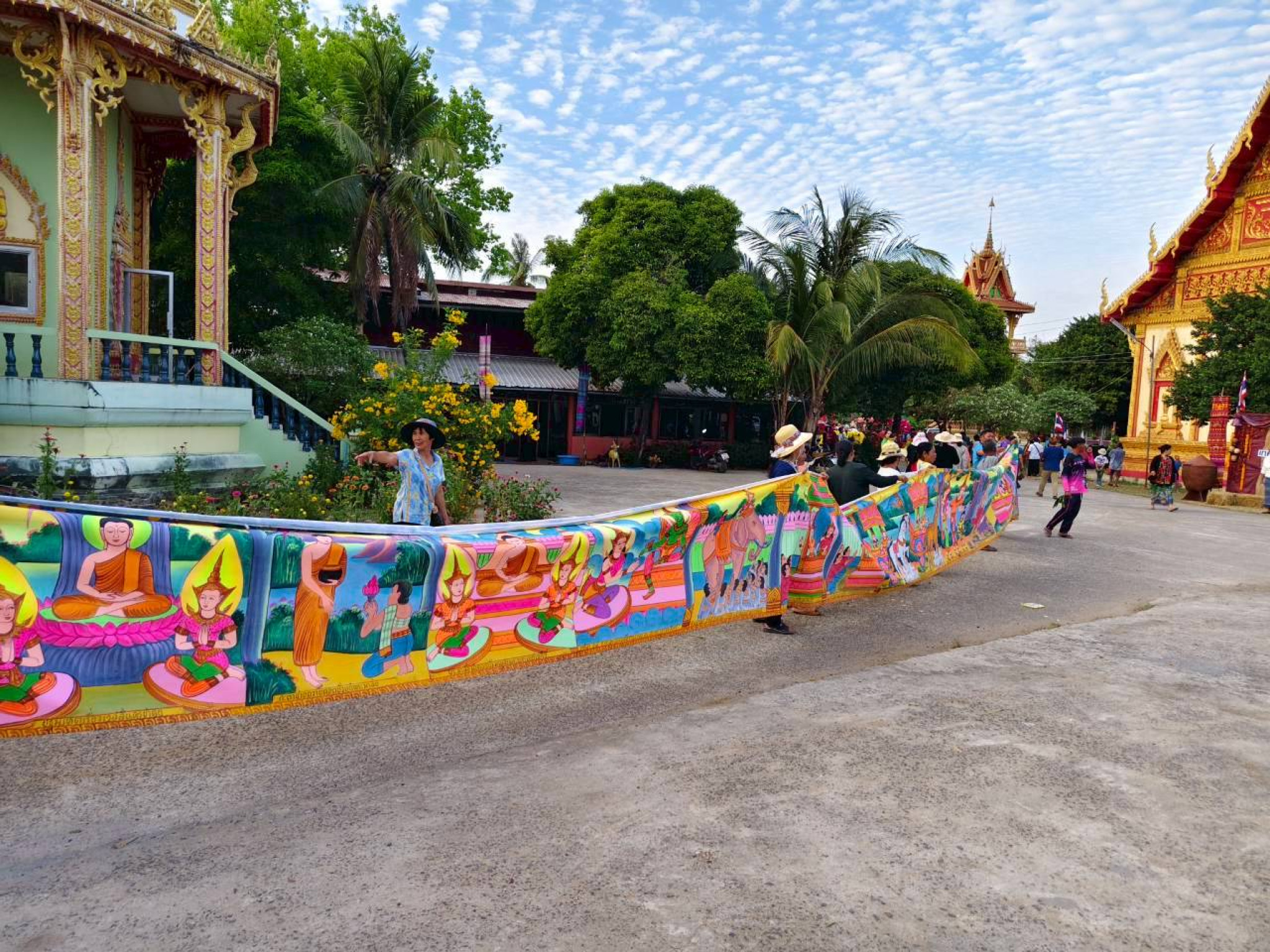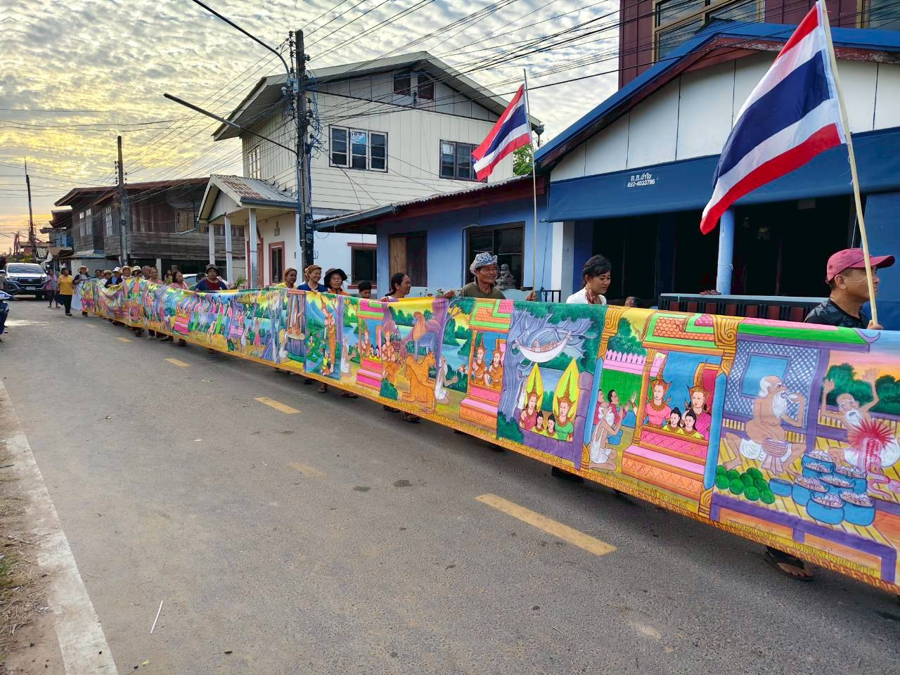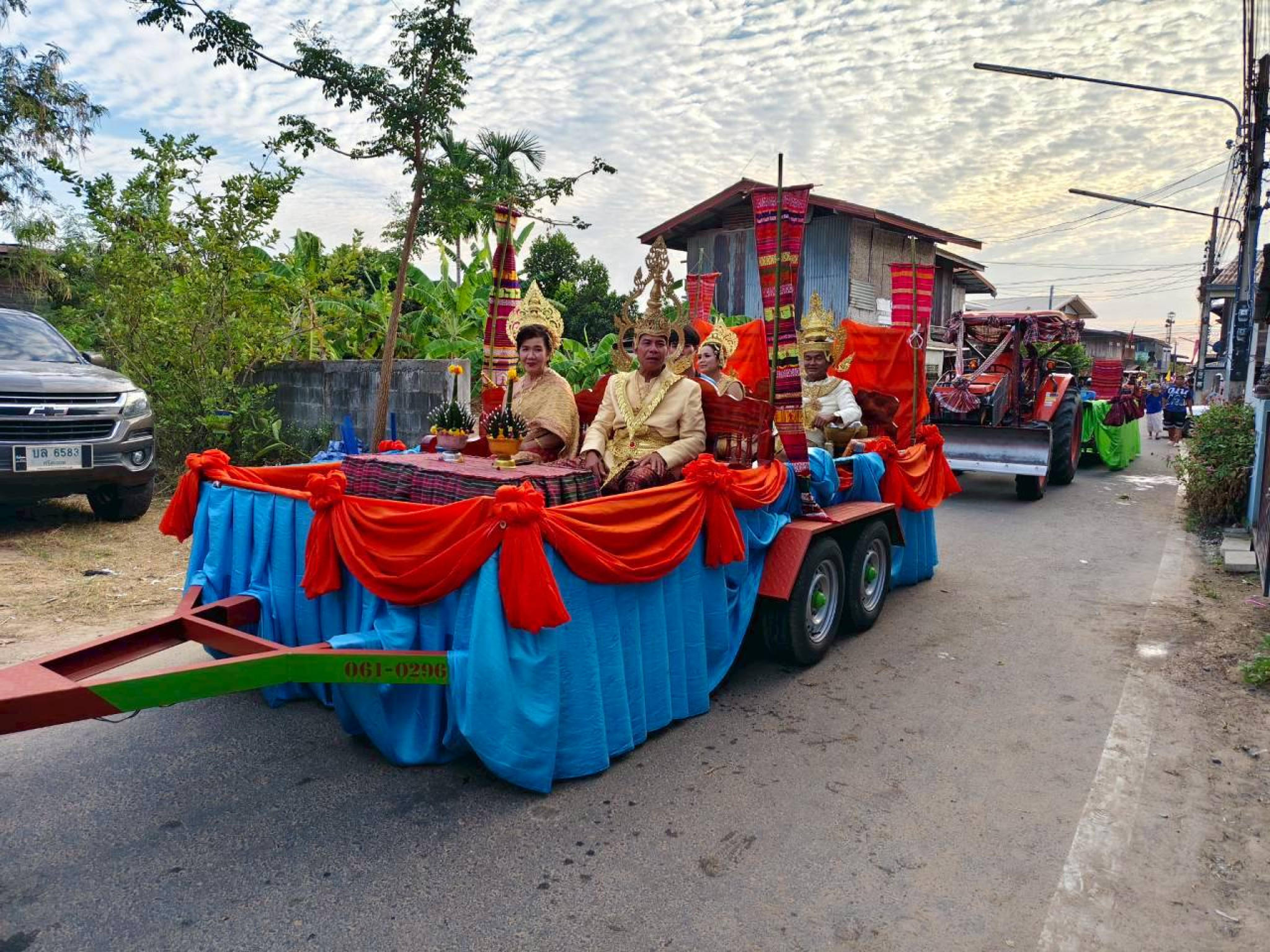 การแห่กัณฑ์เทศน์ของชาวบ้านที่นำมาถวายแบบเซอร์ไพรส์ในช่วงที่พระเทศน์กัณฑ์ต่างๆ