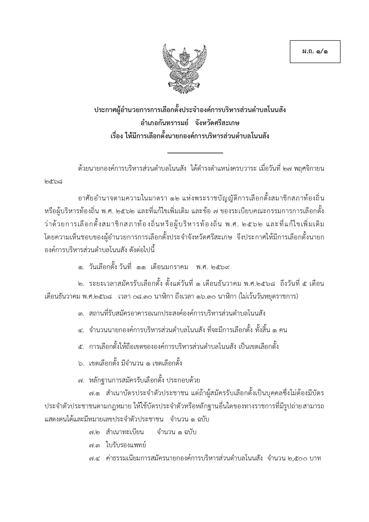 ปลัดองค์การบริหารส่วนตำบลโนนสังปฏิบัติหน้าที่แทน นายกองค์การบริหารส่วนตำบลโนนสัง